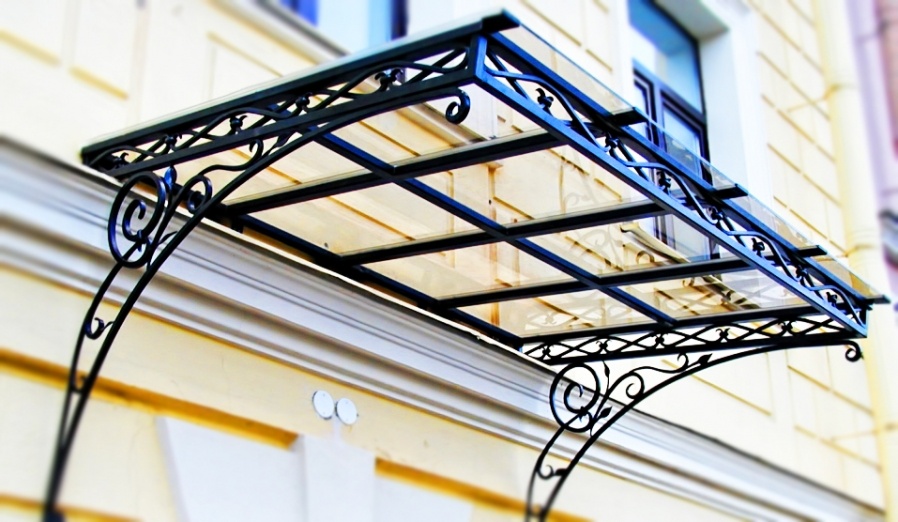Украсить козырьки получится с помощью узорных элементов художественной ковки. Это дорого, но очень эффектно.
