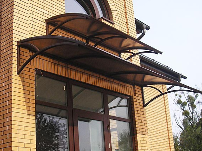 Козырьки широко применяются для обустройства дверных проемов, окон и балконов.