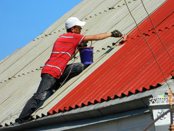 - Слой краски является дополнительным связующим веществом для асбестовой пыли, которая считается вредной для здоровья человека. С его помощью можно сделать шифер более безопасным материалом отделки кровель и фасадов.