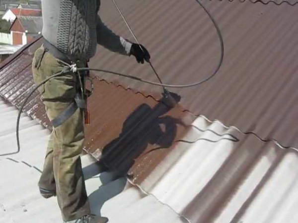 Нанесение грунтовочного состава на шифер