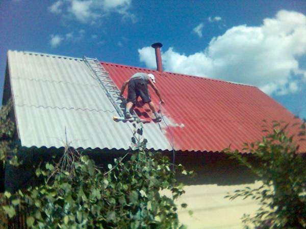 После снятия верхнего слоя шифера во время очистки, поверхность шифера выглядит чистой. Но в шероховатой структуре этого материала живут паразиты и грибок, со временем разрушающие его. Поэтому, прежде чем покрасить шифер, следует создать защитное покрытие, продлевающие срок эксплуатации кровельного материала:
