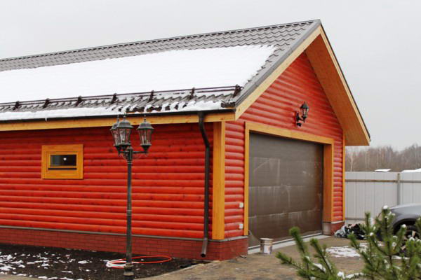 - Обеспечение самостоятельного схода снега и дождевой воды с крыши. Наклонная поверхность скатов двухскатной кровли способствует отводу воды и снеговых масс, благодаря чему нагрузка на стропильный каркас не увеличивается, а необходимость чистить крышу от снега возникает редко. В регионах с большим количеством осадков в зимнее время двускатная крыша гаража – реальная альтернатива односкатных конструкций, которые часто обрушиваются в снегопады.