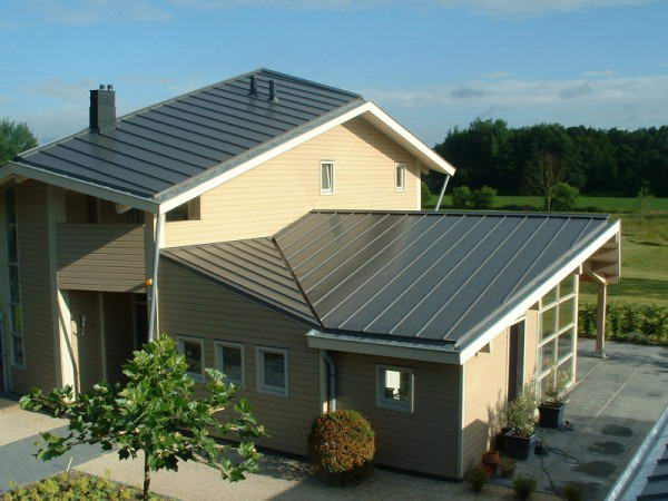 - Сталь. Наилучшими гидроизоляционными и противокоррозионными свойствами облазает легированная цинком или молибденом сталь. Часто чтобы дополнительно защитить кровельный материал на поверхность стали наносят полимерное покрытие, предотвращающее механические повреждения гальванического слоя, а также придающее цвет. Наиболее доступный по цене вариант – неокрашенная оцинкованная сталь. Тем не менее, ремонт кровле из такого материала требуется чаще.
