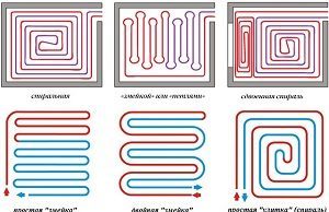 На практике конструирования отопительной системы пола применяют следующие виды укладки труб: