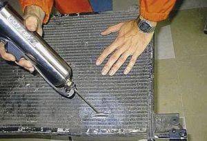 Когда радиаторы начинают течь, существует два способа устранения нарушений. Их можно запаять или заклеить. Пайка алюминиевого радиатора – процедура сложная ввиду химических свойств этого металла.