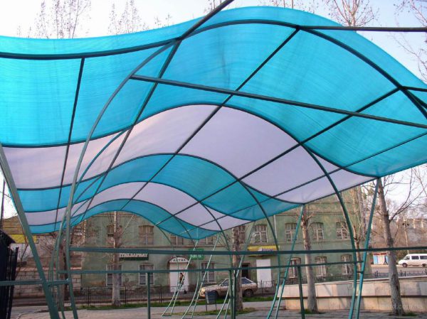 - Возведение кровли. Поликарбонат используют для создания арочных кровельных конструкций для навесов, беседок, козырьков, террас.