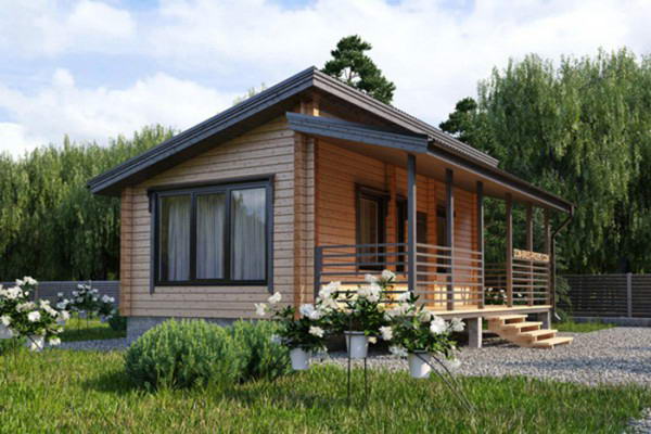 Обратите внимание! За счет использование панелей стоимость строительства одноэтажных каркасных домов ниже, чем возведение срубов из бревна или бруса. Чтобы максимально снизить затраты, лучше выбирать проекты с односкатной крышей, так как такая кровельная конструкция требует меньше строительных материалов, времени на монтаж, а сборка выполняется бригадой из 2 человек всего за 1-2 рабочих дня.
