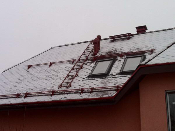 Трубчатый снегозадержатель на крышу представляет собой систему кронштейнов, связанных между собой двумя рядами труб, диаметр которых составляет 10-30 мм. Кронштейн для фиксации устройства на крыши – металлическая пластина, снабженная крепежной полкой и отверстиями для трубок. Трубчатый снегозадержатель монтируют вдоль скатов крыши над несущей стеной дома. Он, разделяет пласт крыши на пластины, падение которых не причинит вреда человеку.