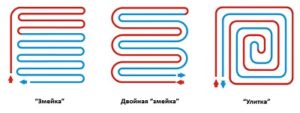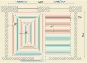 Змейка является наиболее приемлемым способом укладки для небольших помещений с внутренними стенами, тогда как улитка больше подходит для комнат с большой площадью.