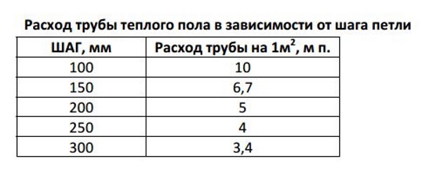 Как показывает практика, в среднем на 1 м2 комнаты уходит 5 м труб, расстояние между витками теплого водяного пола до 30 см. Так же при расчете мощности теплого пола следует учесть «слабые» звенья системы. Это места, где самая высокая потеря тепла, например, окна и дверь, поэтому возле них трубы должны лежать не дальше, чем в 20-25 см. Об этом читайте ниже.