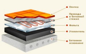 Весь «пирог» — это достаточно высокая конструкция. Чтобы заранее вычислить, какая будет толщина теплого водяного пола под плитку, нужно знать параметры стяжки.