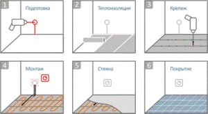 Теплый пол (водяной) в связи с перепадами температур обычное клеящее средство может разрушить, поэтому нужно выбирать его по следующим параметрам: